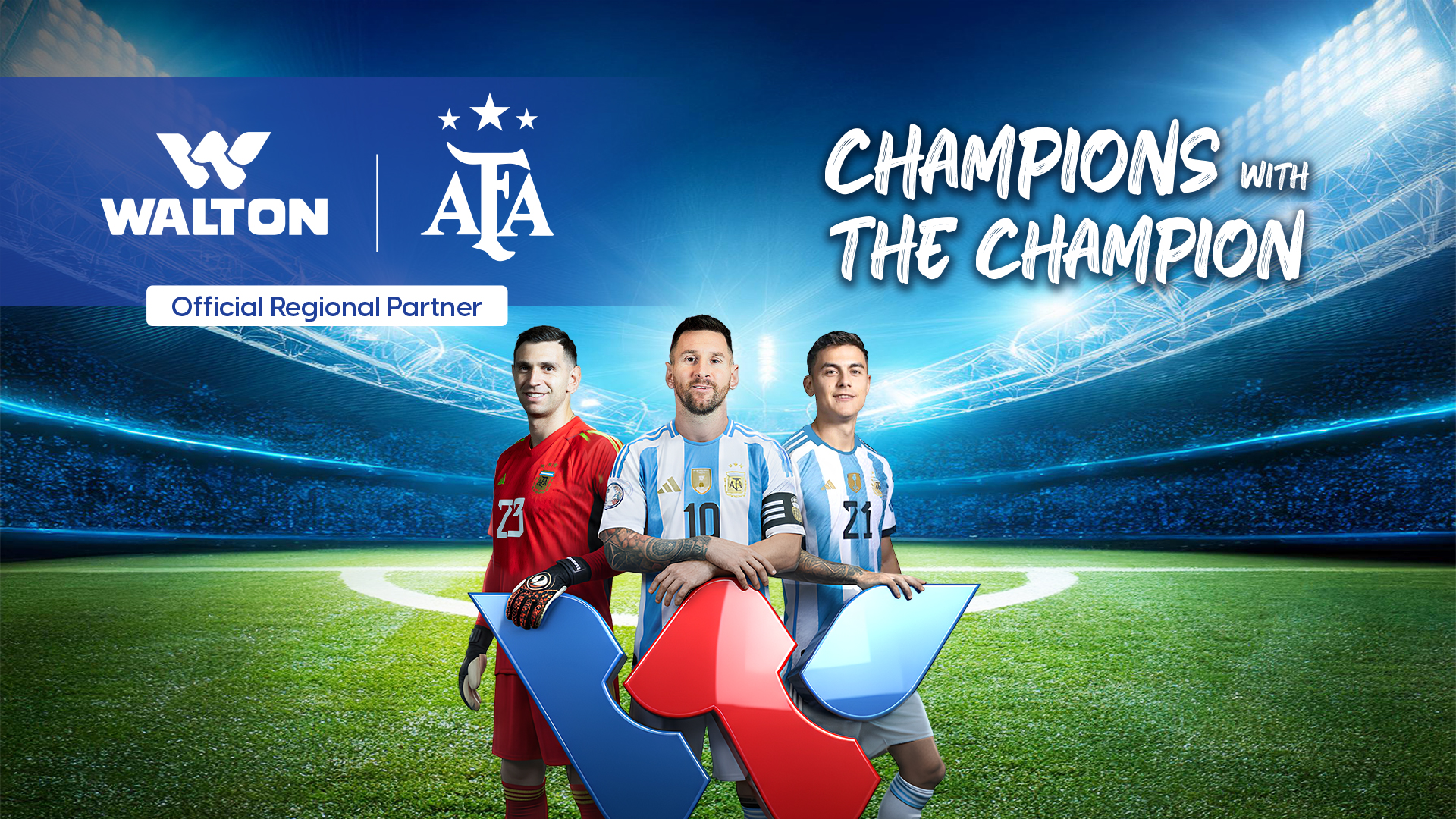 খাতের শীর্ষ ব্র্যান্ড ওয়ালটন। আর্জেন্টিনা দলের অফিশিয়াল রিজিওনাল স্পন্সর হলো ওয়ালটন।