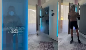বিনোদন ডেস্ক : কাচের দরজার অপর পাশে এক ব্যক্তি ব্যায়াম করছেন। দরজায় লেখা, ‘মাইনাস ১১০ ডিগ্রি’। কিছুক্ষণ পর বন্ধ এই ঘর থেকে বেরিয়ে আসেন বলিউড অভিনেতা অনিল কাপুর। তার পরনে শর্টস। মুখে অক্সিজেন মাস্ক।