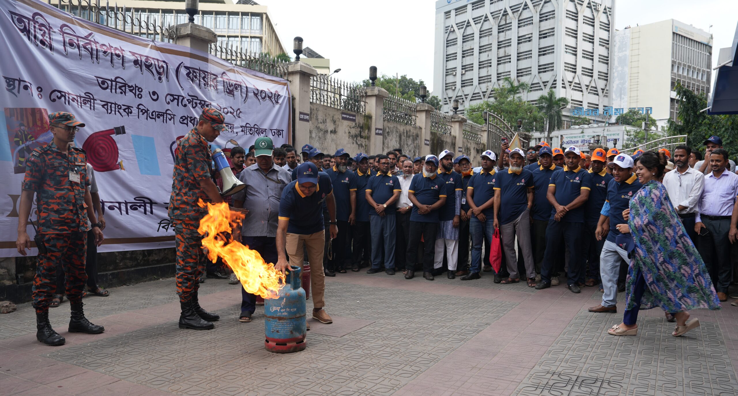 সোনালী ব্যাংক পিএলসির উদ্যোগে প্রধান কার্যালয়ে অগ্নি নির্বাপণ মহড়া অনুষ্ঠিত হয়েছে। বুধবার (০৩ সেপ্টেম্বর) এ উপলক্ষে প্রধান কার্যালয়ের সম্মেলনে কক্ষে আয়োজিত এক সভায় বাংলাদেশ ফায়ার সার্ভিস ও সিভিল ডিফেন্সের একটি দল অংশগ্রহণ করেন।