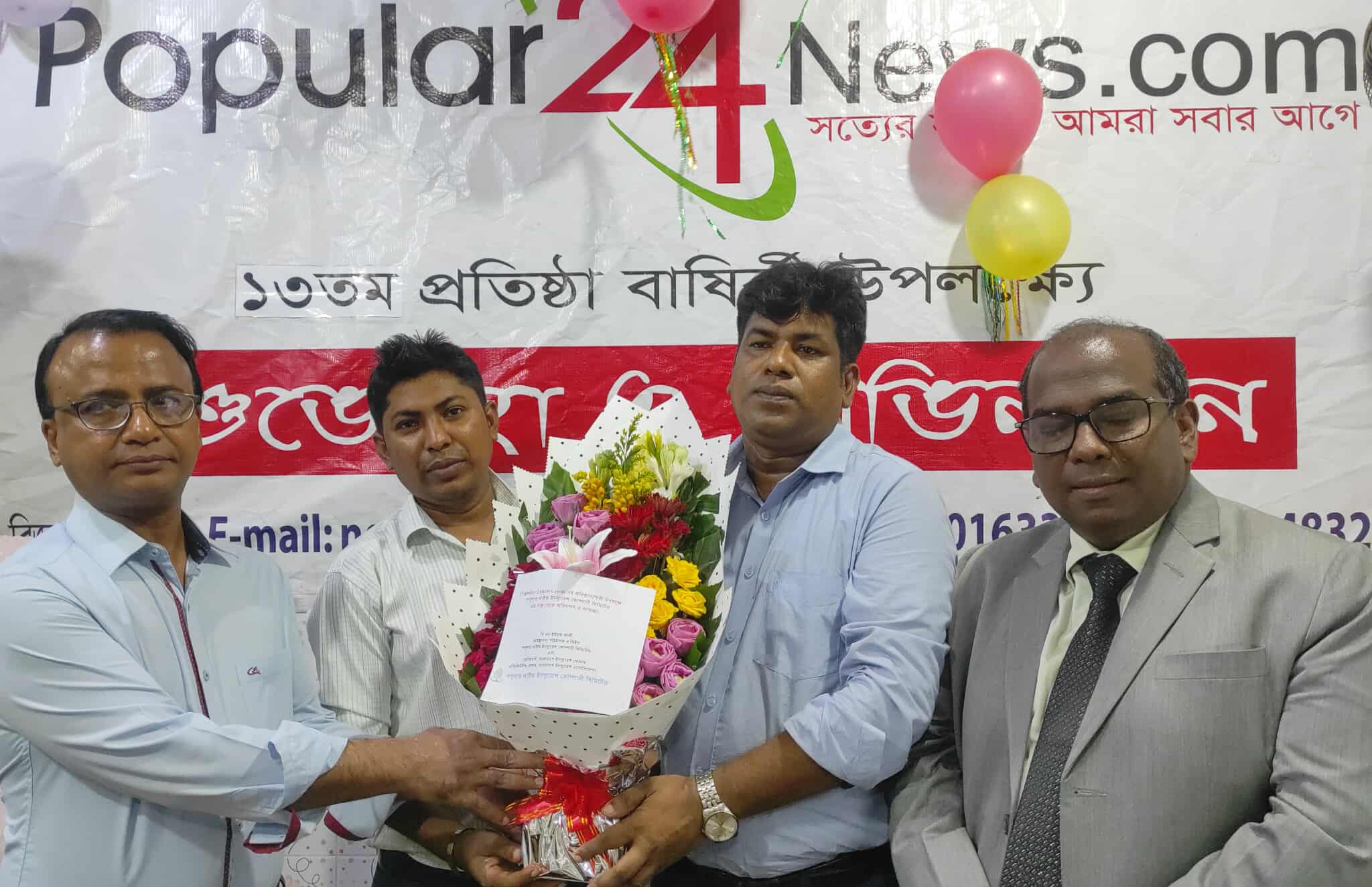 পপুলার২৪নিউজ ডট কম-এর সম্পাদক মো: মাসুদ মিয়ার সভাপতিত্বে এবং নির্বাহী সম্পাদক আতিক রহমানের সঞ্চালনায় ১৩তম প্রতিষ্ঠাবার্ষিকীর অনুষ্ঠানে অতিথি হিসাবে উপস্থিত ছিলেন ন্যাশনাল লাইফ ইন্সুরেন্স কোম্পানির মুখ্য নির্বাহী কর্মকর্তা মোঃ কাজিম উদ্দিন, জেনিথ লাইফ ইন্সুরেন্স কোম্পানির মুখ্য নির্বাহী কর্মকর্তা এস.এম. নুরুজ্জামান, পপুলার লাইফ ইন্সুরেন্স কোম্পানির সিনিয়র উপ ব্যাবস্থাপনা পরিচালক ও পপুলার২৪নিউজ ডটকমের উপদেষ্টা সম্পাদক আলমগীর ফিরোজ, রুপালী ব্যাংক পিএলসির ডিজিএম মোঃ আনিসুর রহমান, দৈনিক বাংলাদেশ প্রতিদিনের উপ সম্পাদক রাজু আহমেদ এবং সারাবাংলা ডট নেটের হেড অব নিউজ গোলাম সামদানী ।