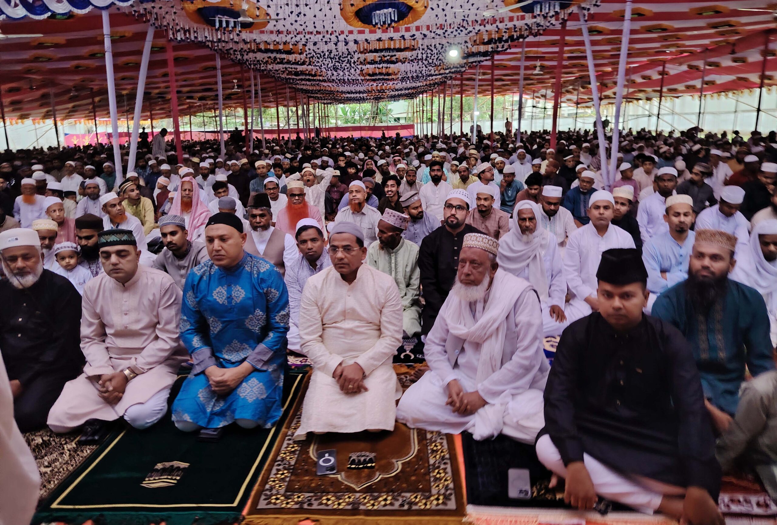 ঈদের জামাত অনুষ্ঠিত হয়েছে। ঈদগাহ মাঠে পবিত্র ঈদ-উল-ফিতরের প্রথম জামাতে নামাজ আদায়