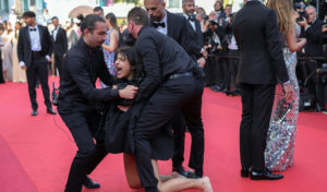 প্রায় নগ্ন ওই তরুণী যখন লাল গালিচায় ছোটাছুটি করছিলেন, তখন নিরাপত্তাকর্মীরা তাকে ঘিরে ফেলেন। এরপর তাকে সরিয়ে নেন।
