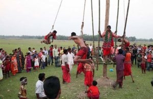 নববর্ষের আগের দিন গ্রামবাংলা মেতে ওঠে চড়ক পুজোর উৎসবে ।২০-২৫ ফুট লম্বা একটি শালগাছের খুঁটি মাটিতে খাড়া করে পুঁতে তার শীর্ষে একটি লম্বা দণ্ড লাগিয়ে দেওয়া হয়। একজন গাজুনে সন্ন্যাসীর পিঠে বড়শি গেঁথে এর সঙ্গে দড়ি দিয়ে বেঁধে শূন্যে চক্রাকারে ঘোরানো হয়।