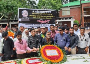 সর্বকালের সর্বশ্রেষ্ঠ বাঙালি জাতির পিতা বঙ্গবন্ধু শেখ মুজিবুর রহমানের ৪৭ তম শাহাদত বার্ষিকী উপলক্ষ্যে আগষ্ট মাসব্যাপী কর্মসূচির অংশ হিসেবে আজ পল্লী সঞ্চয় ব্যাংকের ব্যবস্থাপনা পরিচালক খন্দকার আতাউর রহমানের নেতৃত্বে ব্যাংকের কর্মকর্তা কর্মচারীগণ গোপালগঞ্জের টুঙ্গীপাড়ায় বঙ্গবন্ধুর সমাধিতে পুষ্পস্তবক অর্পণের মাধ্যমে শ্রদ্ধা নিবেদন করেন।
