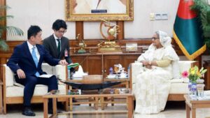 নিজস্ব প্রতিবেদক : প্রধানমন্ত্রী শেখ হাসিনার সঙ্গে সৌজন্য সাক্ষাৎ করেছেন জাপানের পররাষ্ট্রবিষয়ক সংসদীয় উপমন্ত্রী মাশাহিরো ওকামুরা।