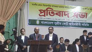 সুপ্রিম কোর্ট আইনজীবী সমিতির সহ সম্পাদক নূর-এ-আলম উজ্জ্বলের সঞ্চালনায় প্রতিবাদ সভায় অ্যাটর্নি জেনারেল এ এম আমিন উদ্দিন, অতিরিক্ত অ্যাটর্নি জেনারেল শেখ মোহাম্মদ মোরশেদ, ব্যারিস্টার মেহেদী হাসান চৌধুরী, আইনজীবী সমিতির সমিতির সভাপতি মোমতাজ উদ্দিন ফকির, সহ-সভাপতি জেসমিন সুলতানা, সম্পাদক আবদুন নূর দুলালসহ আইনজীবী সমিতির সাবেক ও বর্তমান নেতারা ও আওয়ামী লীগ সমর্থিত আইনজীবীরা বক্তব্য দেন।