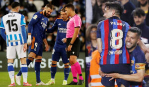 এদিকে সোসিয়েদাদ-রিয়ালের ম্যাচে প্রথমার্ধে গোল পায়নি কেউ। বিরতির পর ৪৭ মিনিটে পিছিয়ে পড়ে রিয়াল। এ সময় সোসিয়েদাদের তাকেফুসা কুবো গোল করে এগিয়ে নেন দলকে। ৬১ মিনিটে দারুণ ধাক্কা খায় রিয়াল। এ সময় দানি কারবাহাল দ্বিতীয় হলুদ কার্ড দেখলে দশজনের দলে পরিণত হয় লস ব্লাঙ্কোসরা।