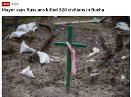 ইউক্রেনের বুচা শহরের মেয়র আনাতোলি ফেদোরুক জানিয়েছেন, সেখানে ৩২০ বেসামরিক নাগরিককে গুলি করে হত্যা করেছে রুশ সৈন্যরা। ওই শহর দখলের সময় এসব নিরীহ মানুষকে হত্যা করা হয়। খবর বিবিসির।