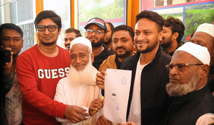 মাগুরা প্রতিনিধি : মাগুরা–১ আসনের আওয়ামী লীগের প্রার্থী হিসেবে আনুষ্ঠানিকভাবে নৌকা প্রতীক পেলেন ক্রিকেটার সাকিব আল হাসান। সোমবার (১৮ ডিসেম্বর) সকালে জেলা রিটার্নিং কর্মকর্তার কার্যালয় থেকে তাকেসহ এই আসনের অন্যান্য প্রার্থীকে প্রতীক বরাদ্দ দেওয়া হয়।