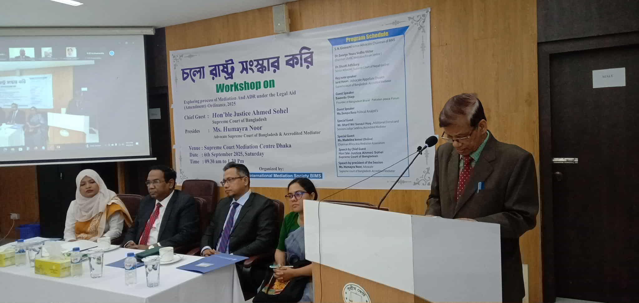 সুপ্রিম কোর্টের মেডিয়েশন সেন্টারে অডিটোরিয়ামে সংশোধিত আইন অর্ডিনেন্স ২০২৫ এর অধীনে মেডিয়েশন প্রক্রিয়া বিষয়ে এক কর্মশালায় তিনি ছিলেন প্রধান অতিথি। বাংলাদেশ মেডিয়েশন সোসাইটির চেয়ারম্যান ও সুপ্রিম কোর্টের সিনিয়র এডভোকেট এস এন গোস্বামী বলেন শান্তিময় সমাজ গঠনে মেডিয়েশন বা মধ্যস্থতার ভূমিকা অনেক।