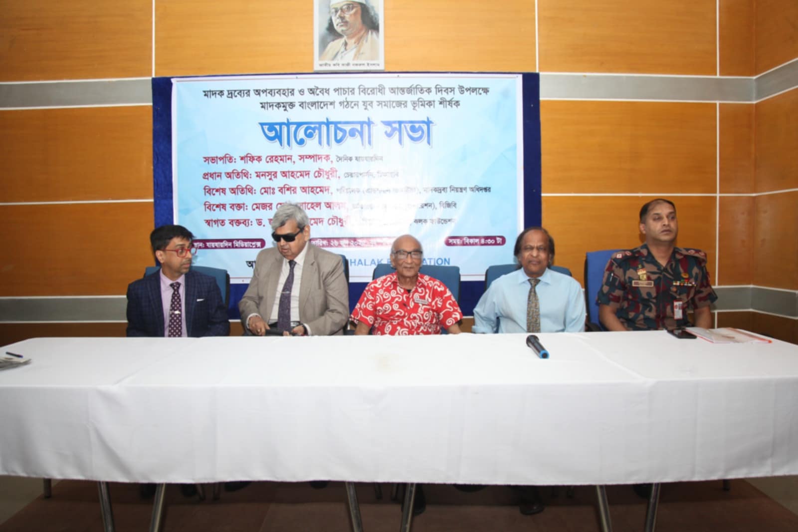 বিশেষ বক্তা ছিলেন বর্ডার গার্ড বাংলাদেশের (বিজিবি) অতিরিক্ত পরিচালক (অপারেশন) মেজর মো. সোহেল আলম। অনুষ্ঠানে স্বাগত বক্তব্য রাখেন ঝলক ফাউন্ডেশনের প্রতিষ্ঠাতা চেয়ারম্যান ড. জাহিদ আহমেদ চৌধুরী। অন্যদের মধ্যে বক্তব্য রাখেন এটিএন বাংলার উপদেষ্টা তাশিক আহমেদ, ব্যবসায়ী ফেরদৌস খান আলমগীর, লে. কর্নেল (অব.) আনিসুর রহমান, ইস্পাহানী ইসলামিয়া চক্ষু ইন্সটিটিউট ও হসপিটালের মাইক্রো সার্জন ডা. সজীব পাল, জাতীয় নাগরিক পার্টির (এনসিপি) কেন্দ্রীয় সমন্বয়ক (উত্তরাঞ্চল) আবদুল্লাহ আল মুহিম এবং ফেরদৌস খান আলমগীর। সভাটি সঞ্চালনা করেন যায়যায়দিনের যুগ্ম সম্পাদক মোহাম্মদ মাহমুদুজ্জামান। সম্পাদক শফিক রেহমান বলেন, সুন্দর বাংলাদেশ গড়তে যুব সমাজকে মাদকের কবল থেকে রক্ষা করতে হবে।