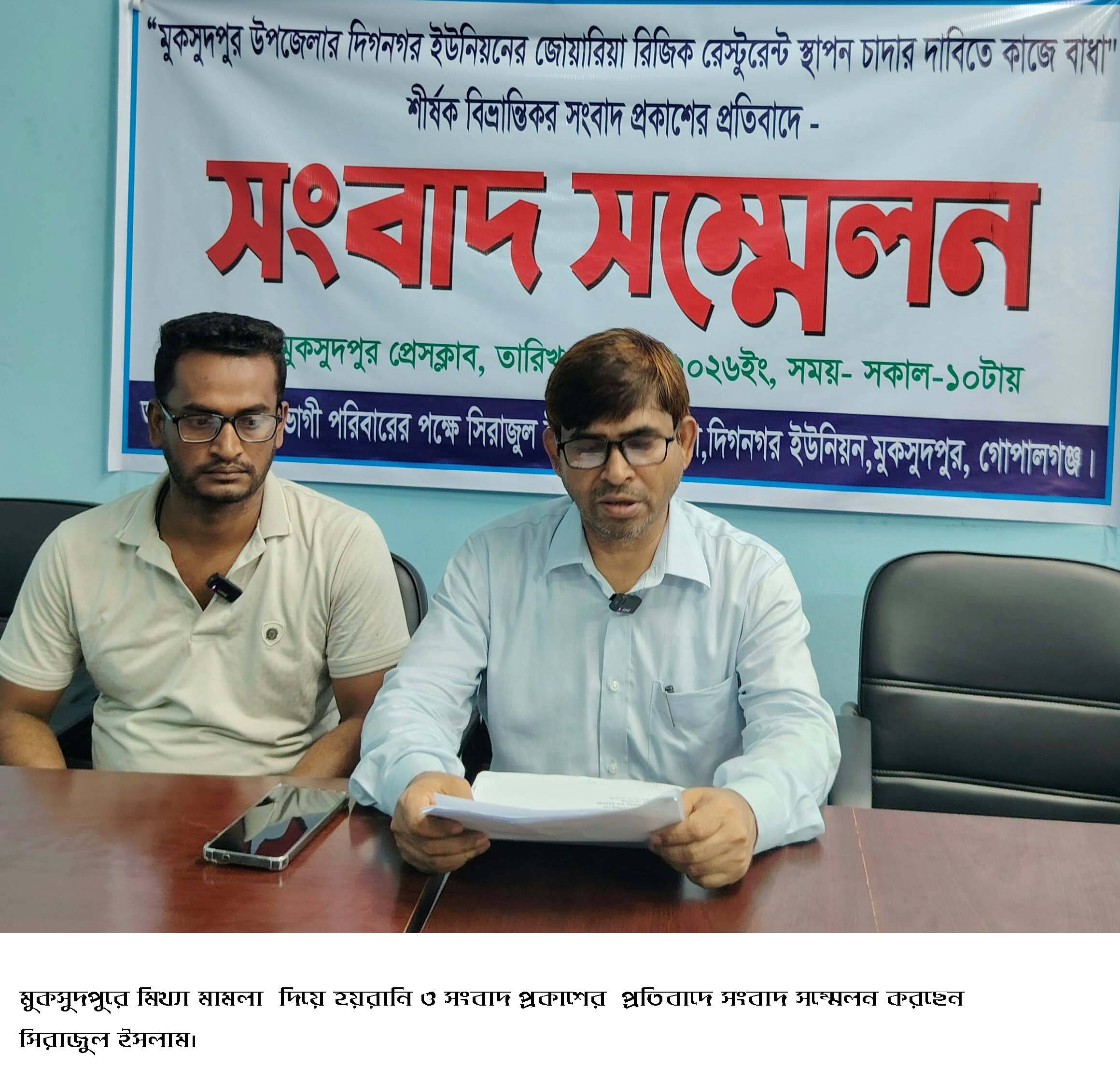 মুকসুদপুরে জমি বিরোধ ও রেস্টুরেন্ট স্থাপন নিয়ে বিভ্রান্তিকর সংবাদ প্রকাশের প্রতিবাদে সংবাদ সম্মেলন