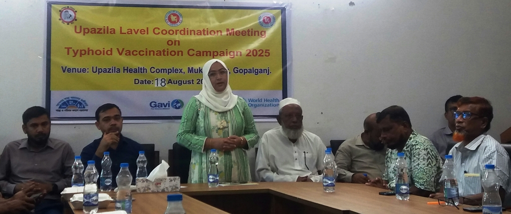 গোপালগঞ্জের মুকসুদপুরে জাতীয় টাইফয়েড টিকাদান ক্যাম্পেইন উপলক্ষে ১৮ আগষ্ট সোমবার সকাল ১০টায় হাসপাতাল কনফারেন্স রুমে মুকসুদপুর উপজেলা স্বাস্থ্য কমপ্লেক্সসের আয়োজনে কো-অর্ডিনেশন সভা অনুষ্ঠিত হয়েছে।
