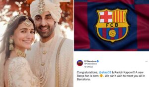 আলিয়ার এই পোস্ট শেয়ার করে বার্সেলোনার অফিশিয়াল টুইটারে লিখেছেন— ‘অভিনন্দন আলিয়া ভাট, রণবীর কাপুর! নতুন বার্সা ফ্যানের জন্ম হলো। আপনাদের সবাইকে বার্সেলোনায় একসঙ্গে দেখার অপেক্ষায় রইলাম।’