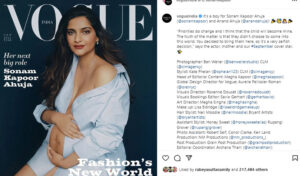 এদিকে ফটো ও ভিডিও শেয়ারিং সাইট ইনস্টাগ্রামে বিখ্যাত একটি ম্যাগাজিনের প্রচ্ছদ শেয়ার করেছেন সোনম। এতে তাকে অন্তঃসত্ত্বা অবস্থায় বোতাম খোলা শার্ট পরে দেখা গেছে। ক্যাপশনে তার মা হওয়ার অভিজ্ঞতা জানিয়েছেন তিনি।