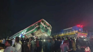 কুমিল্লার নাঙ্গলকোটে সোনার বাংলা এক্সপ্রেস ট্রেন লাইনচ্যুত হয়েছে। এতে ট্রেনটির অন্তত সাতটি বগি দুমড়ে-মুচড়ে গেছে। এ ঘটনায় বহু হতাহতের আশঙ্কা করা হচ্ছে।