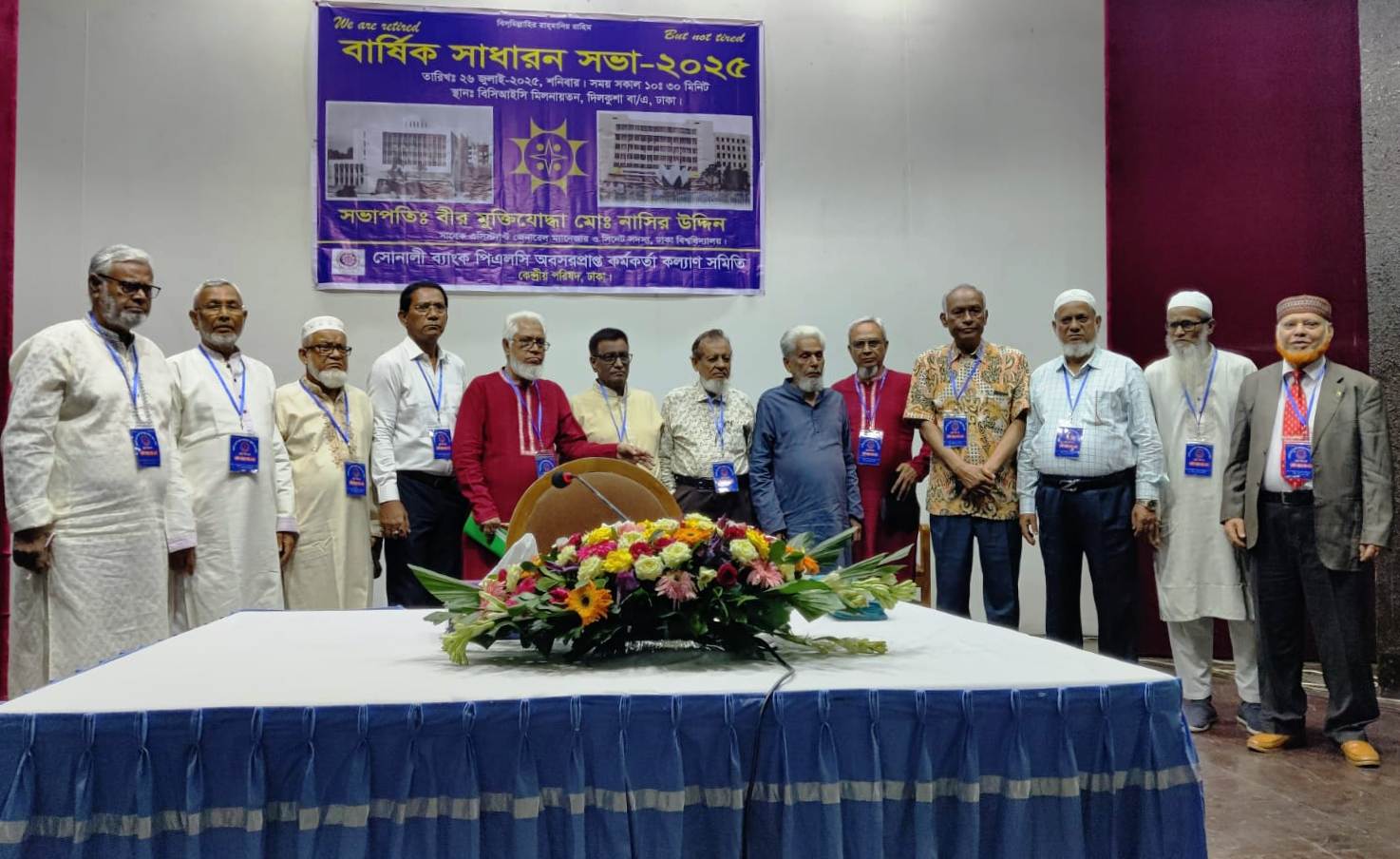 সোনালী ব্যাংক পিএলসি অবসরপ্রাপ্ত কর্মকর্তা কল্যাণ সমিতির বার্ষিক সাধারণ সভা (এজিএম) অনুষ্ঠিত হয়েছে। ২৬ জুলাই শনিবার রাজধানীর বিসিআইসি মিলনায়তনে অনুষ্ঠিত সাধারণ সভায় সভাপতিত্ব করেন এসিস্ট্যান্ট জেনারেল ম্যানেজার (অব.) ও ঢাকা বিশ্ববিদ্যালয়ের সিনেট সদস্য বীর মুক্তিযোদ্ধা মোঃ নাসির উদ্দিন।