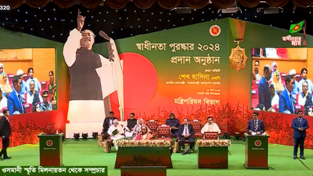 সোমবার (২৫ মার্চ) রাজধানীর ওসমানী স্মৃতি মিলনায়তনে স্বাধীনতা পুরস্কার-২০২৪ প্রদান অনুষ্ঠানের আয়োজন করা হয়। সেখানেই এ তিনি পুরস্কার তুলে দেন।