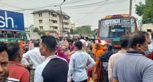 বেতনের দাবিতে তেজগাঁওয়ে পোশাক শ্রমিকদের সড়ক অবরোধ