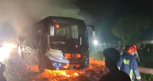 ঢাকা-টাঙ্গাইল মহাসড়কে চলন্ত বাসে আগুন