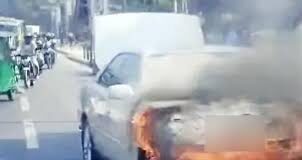 রাজধানীর কুর্মিটোলায় প্রাইভেটকারে আগুন