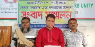 সংবাদ সম্মেলন করে মুকসুদপুরে আওয়ামী লীগের ৩ নেতার পদত্যাগ