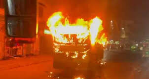 সিলেটে অ্যাম্বুলেন্স-বাসে দুর্বৃত্তদের আগুন