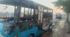 ঢাকা-চট্টগ্রাম মহাসড়কে দাঁড়িয়ে থাকা মিনিবাসে আগুন