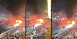 রাজধানীর ধোলাইপাড়ে বাসে আগুন