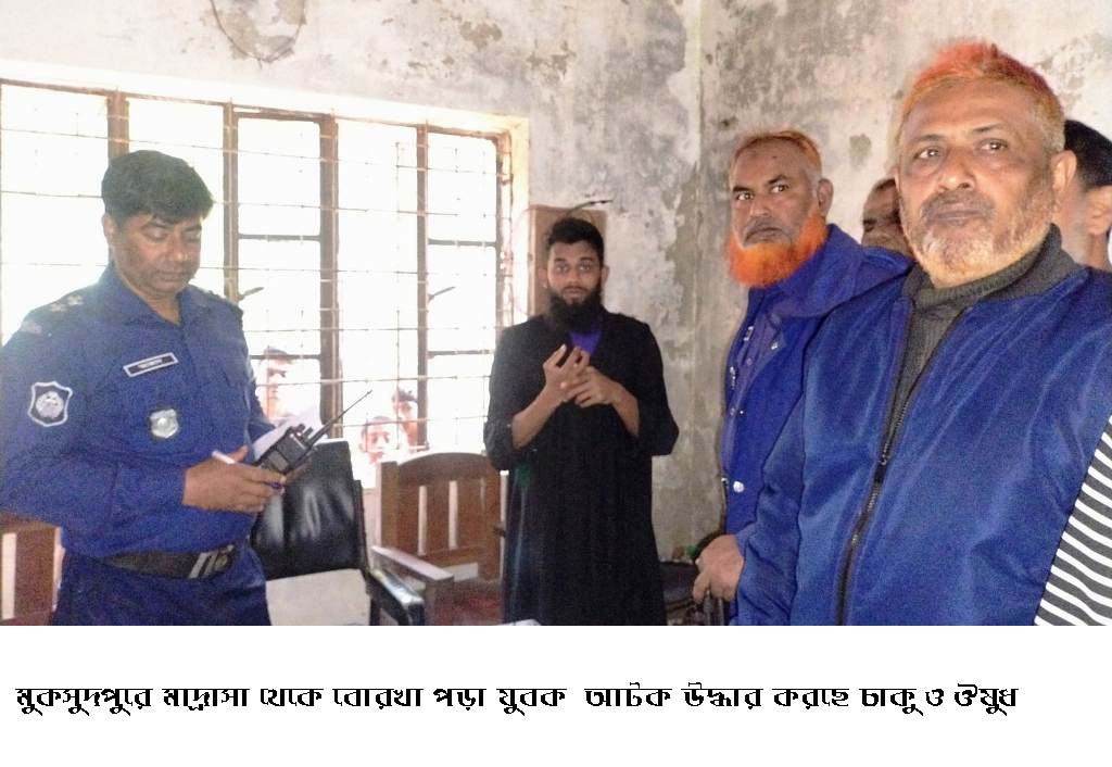 মুকসুদপুরে মাদ্রাসা থেকে বোরখা পড়া যুবক আটক