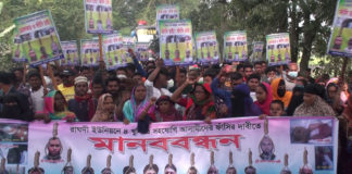 মুকসুদপুরে নিলু মুন্সির হত্যাকারীদের ফাঁসির দাবিতে মানববন্ধন