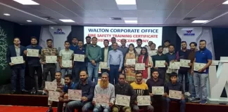ওয়ালটন হাইটেক অফিসে অগ্নিনির্বাপণ প্রশিক্ষণের সনদ বিতরণ