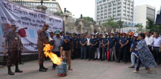 সোনালী ব্যাংকে অগ্নি নির্বাপণ মহড়া অনুষ্ঠিত
