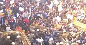 দিল্লিতে বাংলাদেশ হাইকমিশনের সামনে বিক্ষোভ, ব্যারিকেড ভেঙে ভেতরে ঢোকার চেষ্টা