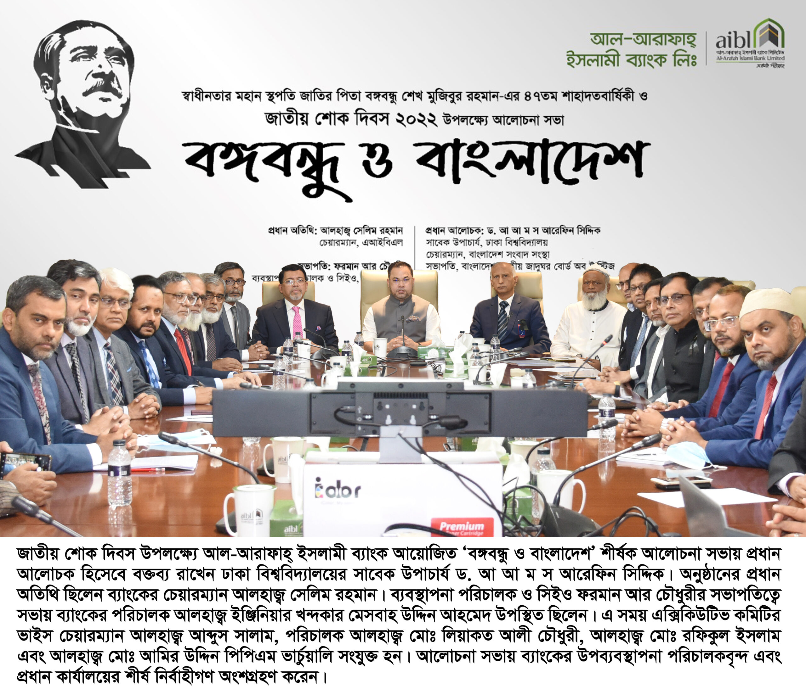 জাতীয় শোক দিবস উপলক্ষ্যে আল-আরাফাহ্ ইসলামী ব্যাংকে ‘বঙ্গবন্ধু ও বাংলাদেশ’ শীর্ষক আলোচনা