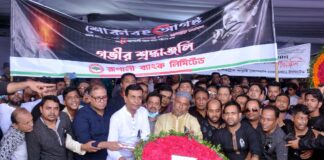 জাতীয় শোক দিবসে বঙ্গবন্ধুর প্রতিকৃতিতে অগ্রণী ব্যাংক এর শ্রদ্ধা