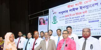 পপুলার লাইফের বীমা গ্রাহকের বীমা দাবীর ৩ কোটি ২০ লক্ষ টাকার চেক হস্তান্তর