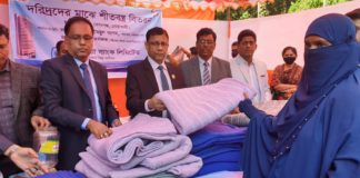 ছিন্নমূল শীতার্ত মানুষের মাঝে সোনালী ব্যাংকের এমডির কম্বল বিতরন