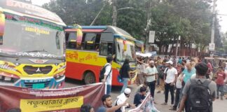 নতুন বাজারে সড়ক অবরোধ ইউআইইউ শিক্ষার্থীদের, যান চলাচল বন্ধ