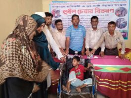 মুকসুদপুরে মাতৃস্নহ প্রতিবন্ধী ও যুব নারী উন্নয়ন সংস্থার প্রতিবন্ধী হুইল চেয়ার বিতরণ