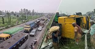 মালবাহী ট্রাক উল্টে ঢাকা-টাঙ্গাইল মহাসড়কে ৪ কিলোমিটার যানজট