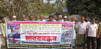 মুকসুদপুরে নিলু মুন্সির হত্যাকারীদের ফাঁসির দাবিতে মানববন্ধন
