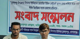 মুকসুদপুরে জমি বিরোধ ও রেস্টুরেন্ট স্থাপন নিয়ে বিভ্রান্তিকর সংবাদ প্রকাশের প্রতিবাদে সংবাদ সম্মেলন