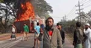 নিয়ন্ত্রণ হারিয়ে চলন্ত বাসে আগুনে নিহত ৪, আহত ১২