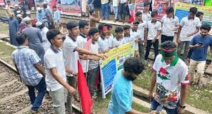 সিলেটে আট দফা দাবিতে রেলপথ অবরোধ, ট্রেন যাত্রায় বিলম্ব